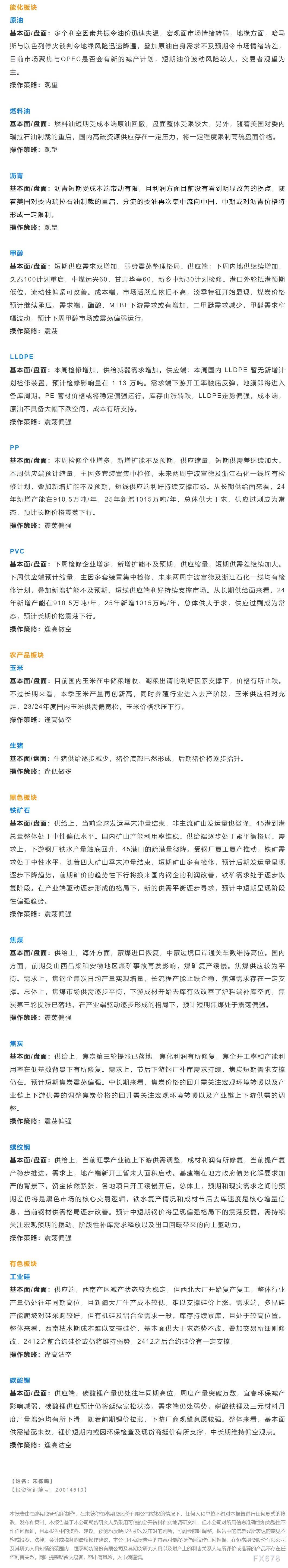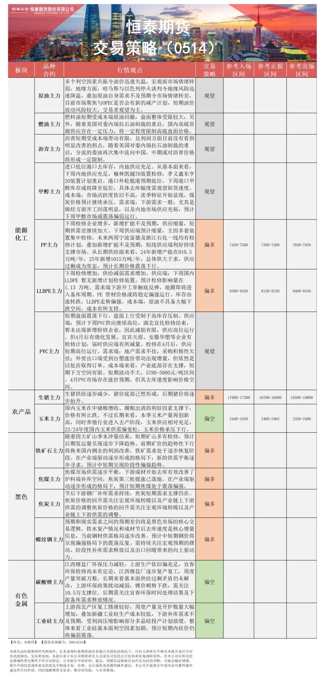 以下是恒泰期货今日早间交易策略,覆盖品种有:原油燃料油等能源化工、玉米生猪等农产品、黑色系如铁矿石焦煤焦炭螺纹钢、有色系如工业硅碳酸锂等。