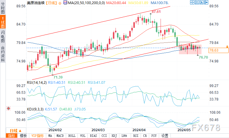 周四(5月16日)欧盘时段,美国主要通胀数据放缓引发的油价反弹势头消退,导致原油期货价格小幅走低。 美国4月消费者物价指数(cpi)涨幅低于预期,强化了市场对9月降息的预期。此外,美国零售销售的大幅下降表明政策宽松的空间更大。降息可能会削弱美元,使其他货币的持有者更能负担得起石油,从而可能增加需求。 EIA数据显示库存下降 美国能源情报署(EIA)的数据显示,美国原油库存下降幅度大于预期。截至5月10日当周,原油库存减少250万桶至4.57亿桶,大大超过分析师预期的减少54.3万桶。这一减少反映了炼油活动的增加和燃料需求的上升。 中东地缘政治风险 中东的地缘政治紧张局势增加了油价的风险溢价。以色列在加沙对哈马斯的军事行动继续升级,由卡塔尔和埃及斡旋的停火谈判目前陷入僵局。此类冲突往往会加剧人们对供应中断的担忧,从而推高油价。 IEA调整后的需求预测 尽管有看涨因素,但国际能源署(IEA)下调了对2024年石油需求增长的预测,这在一定程度上限制了涨幅。IEA目前预计,全球石油需求将增加110万桶/日,比之前的预测减少14万桶/日。这一修正主要反映了经合组织发达国家需求的疲软。 市场预测:前景看涨 考虑到来自美国的有利数据,持续的地缘政治风险,尽管国际能源署修改了预测,但油价的短期前景仍然看涨。来自美国的强劲需求信号,以及地缘政治紧张局势可能造成的供应中断,可能会使油价继续走高。交易员应密切关注美国经济政策和中东地缘政治的进一步发展。 技术分析