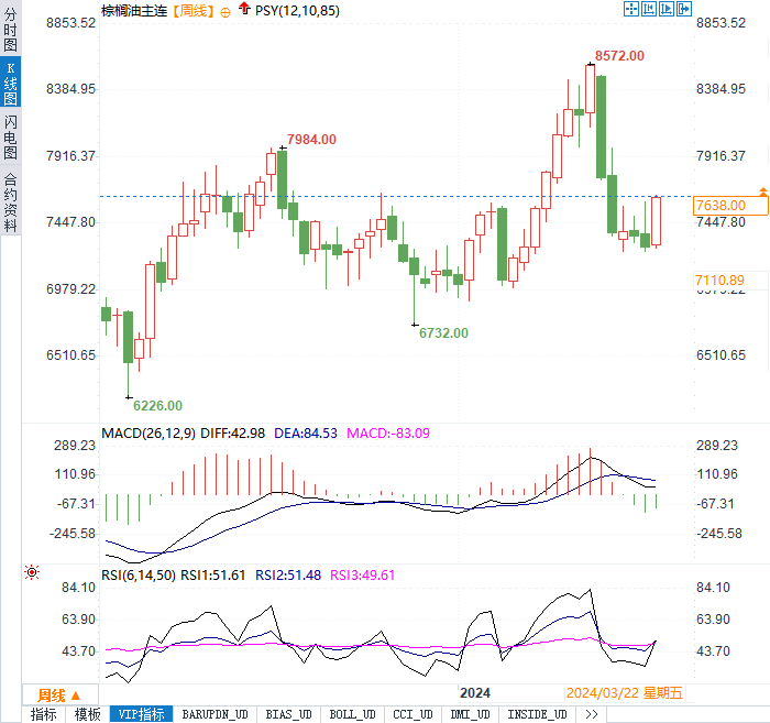 本周,马来西亚的棕榈油期货市场展现出了积极的上涨趋势,成功实现了周度涨幅。这一价格的上升与大连和芝加哥市场上其他油类商品价格的上涨趋势相呼应。