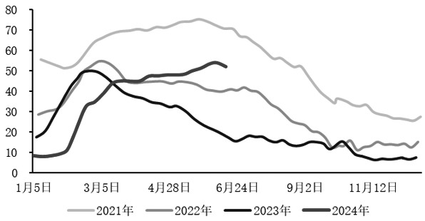 但原料的需求预计进入到高增长阶段。2024—2025年是国内冶炼增长高峰阶段,有100万~120万吨冶炼产能增量预期。5月29日国务院印发《2024—2025年节能降碳行动方案》,在有色金属中,电解铝单吨能耗及总耗电量最高,节能降碳压力较大,铜、锌次之。方案针对铜冶炼产能的管控措施主要有:优化有色金属产能布局,从严控制铜冶炼新增产能,大力发展再生金属产业,至2025年年底,再生金属供应比例需达24%;推进有色金属行业节能降碳改造,至2025年年底,铜冶炼能效标杆水平以上占比需达50%以上。但目前行动方案细则尚待明确,虽然远期对铜冶炼存在能耗管控限制,但考虑到以降碳为主要目的,铜能耗偏低,预计对现有新增冶炼产能影响有限。