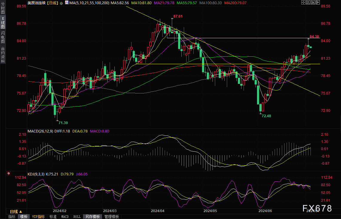 周三(7月3日)亚市早盘,国际油价震荡微跌,美原油目前交投于82.98美元/桶附近。布伦特原油期货和美国原油期货周二冲高回落,在刷新逾两个月高点后回调涨幅并小幅收跌,对飓风贝里尔造成供应干扰的担忧逐渐缓解,尽管API库存大幅下降,但需求高峰来临之际,API汽油库存意外增加 布伦特原油期货周二收跌0.36美元,或0.42%,结算价报每桶86.24美元。美国原油期货周二结算价报每桶82.81美元,下跌0.57美元,或0.68%。 稍早,美国原油上涨1美元,触及每桶84.38美元,因担心贝里尔可能会对美国监管的墨西哥湾北部近海石油产区产生更广泛的影响,而此时美国对汽车燃料的需求正在增加。 两大指标在周一均上涨约2%。