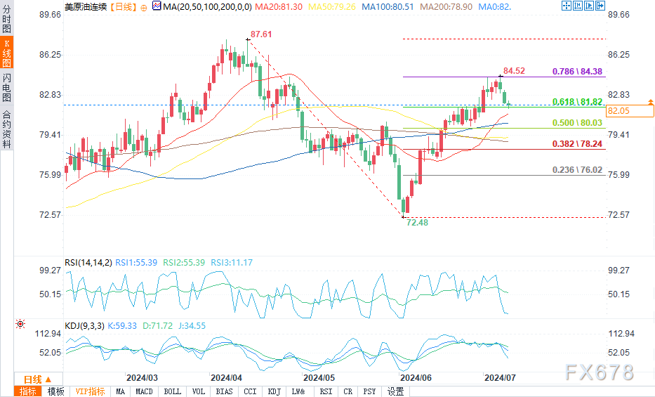 市场参与者正在等待美国通胀数据和美联储主席鲍威尔在国会露面,近期疲软的就业数据增加了降息预期。尽管经历了三个交易日的回落,但WTI原油期货的整体走势仍然看涨。
